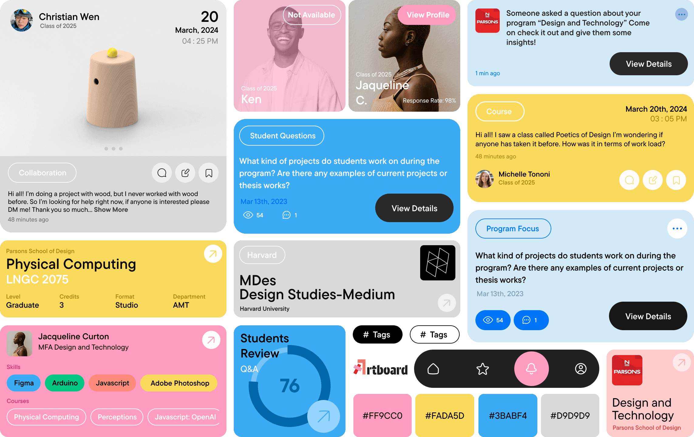Artboard is a community-driven platform that helps prospective and current art students connect, share insights, and navigate the art school experience. It enables applicants to access firsthand information from enrolled students while providing enrolled students with opportunities for collaboration, and networking.