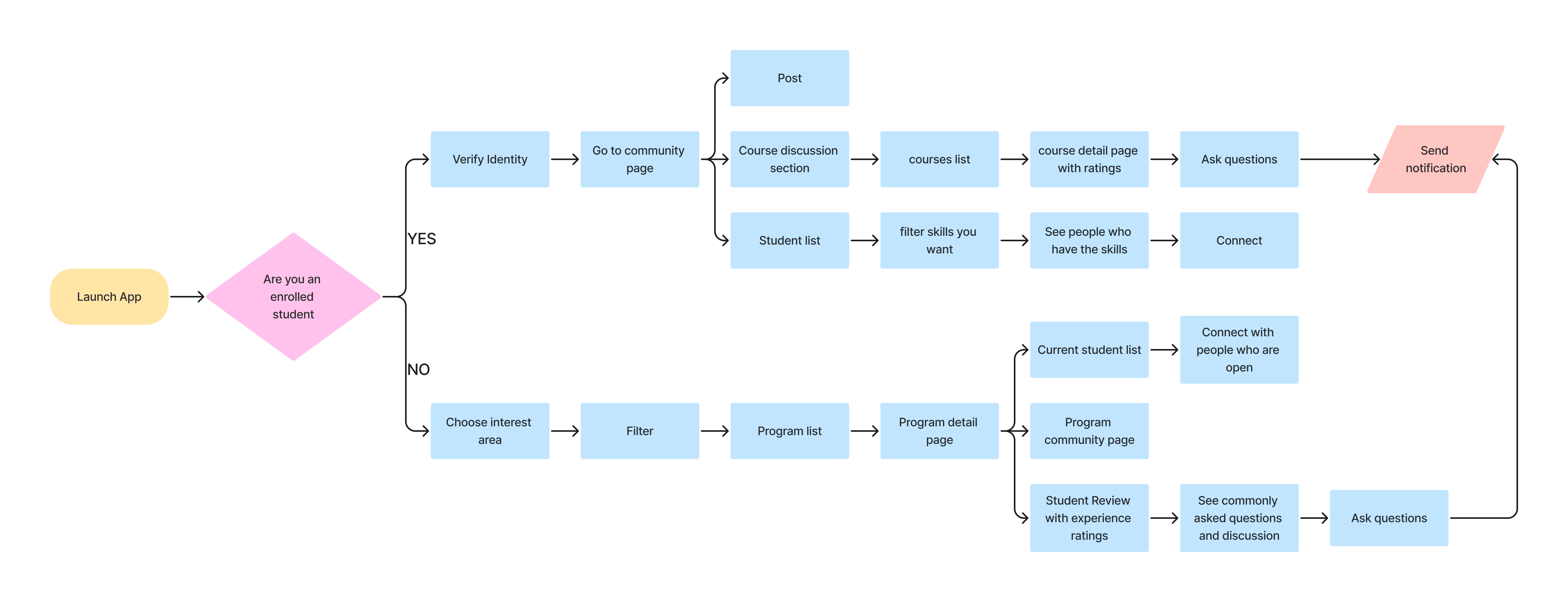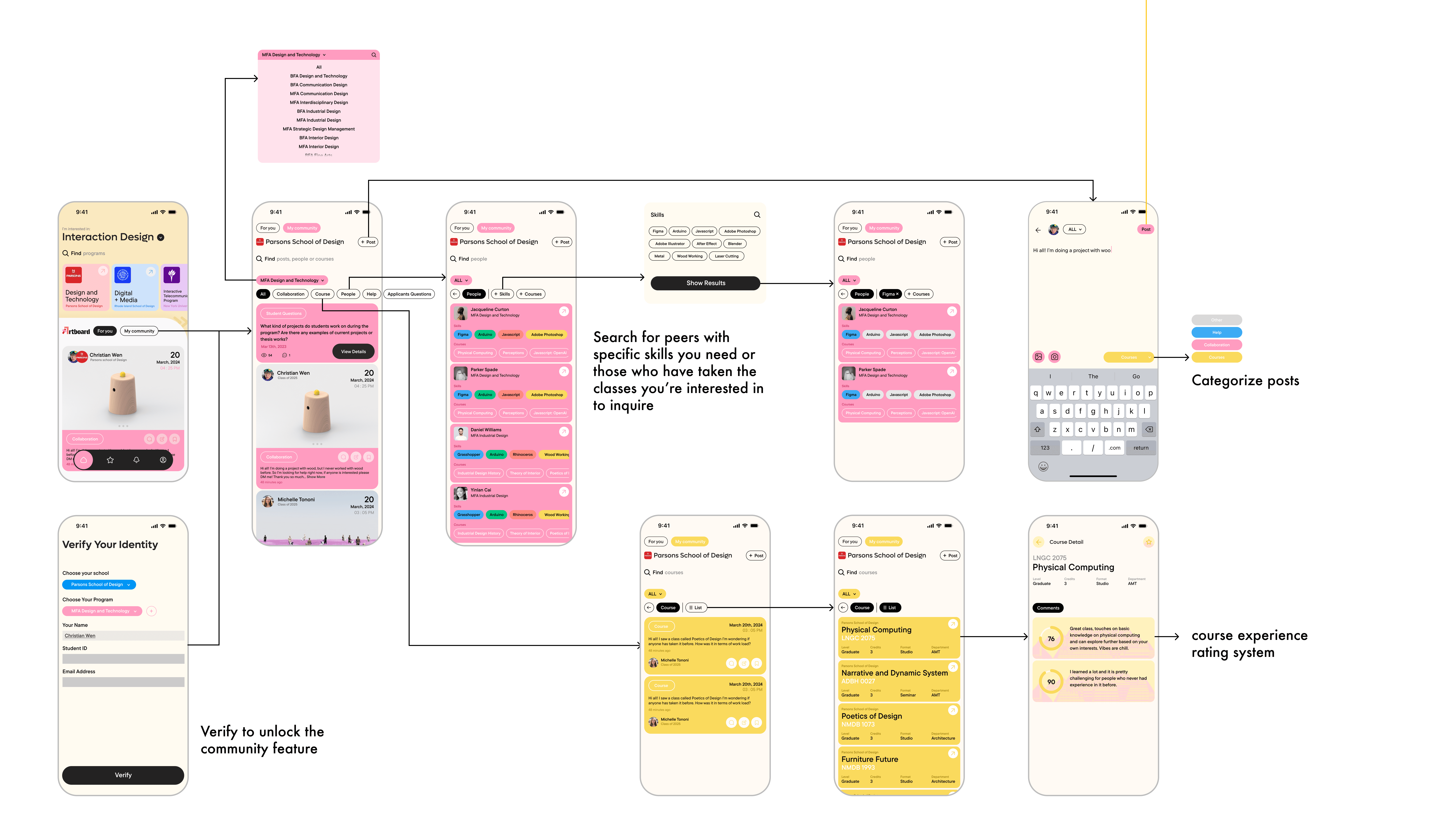 I created a user flow chart to guide the design and then finished the main flows, introducing the key features.