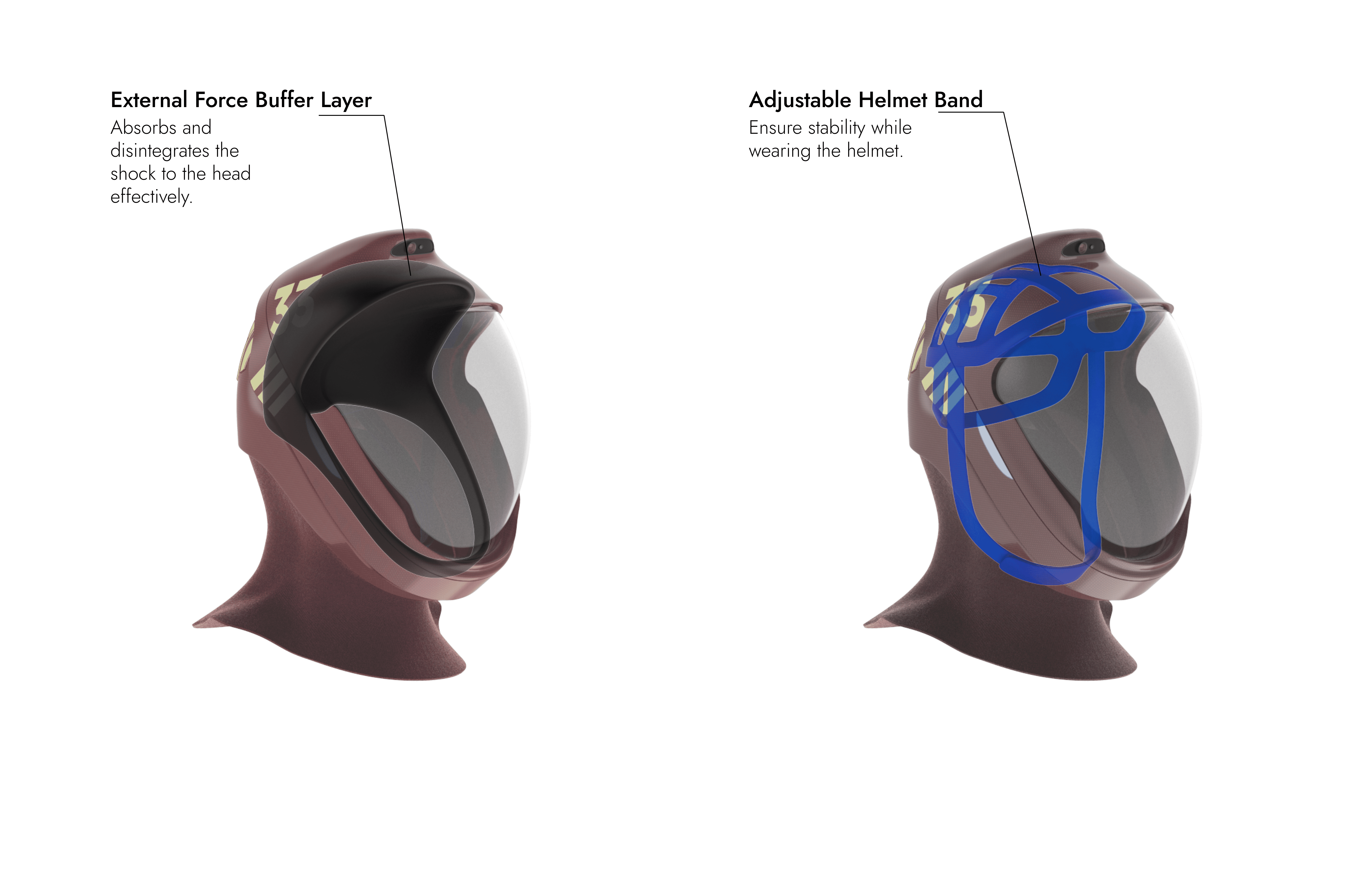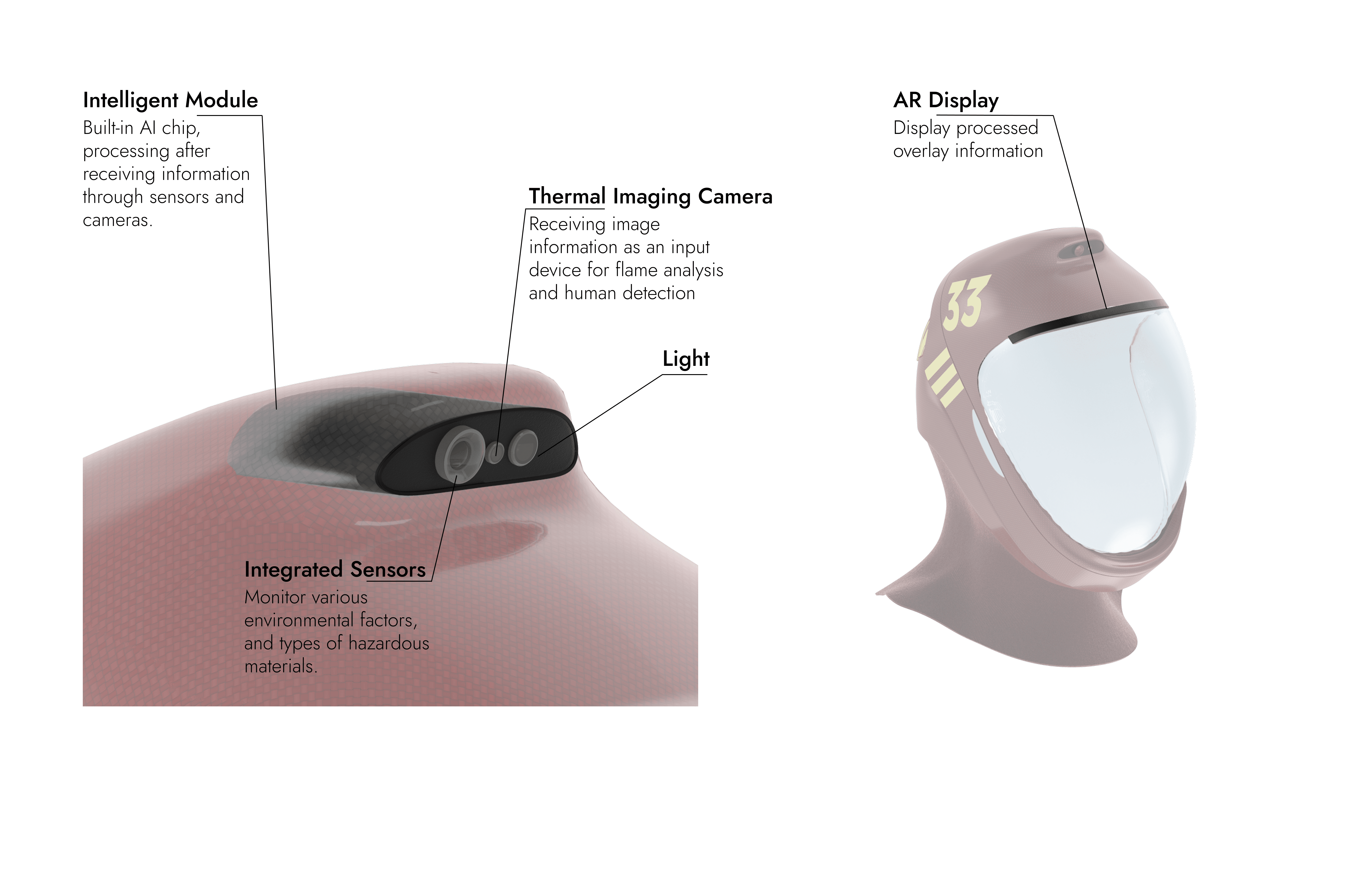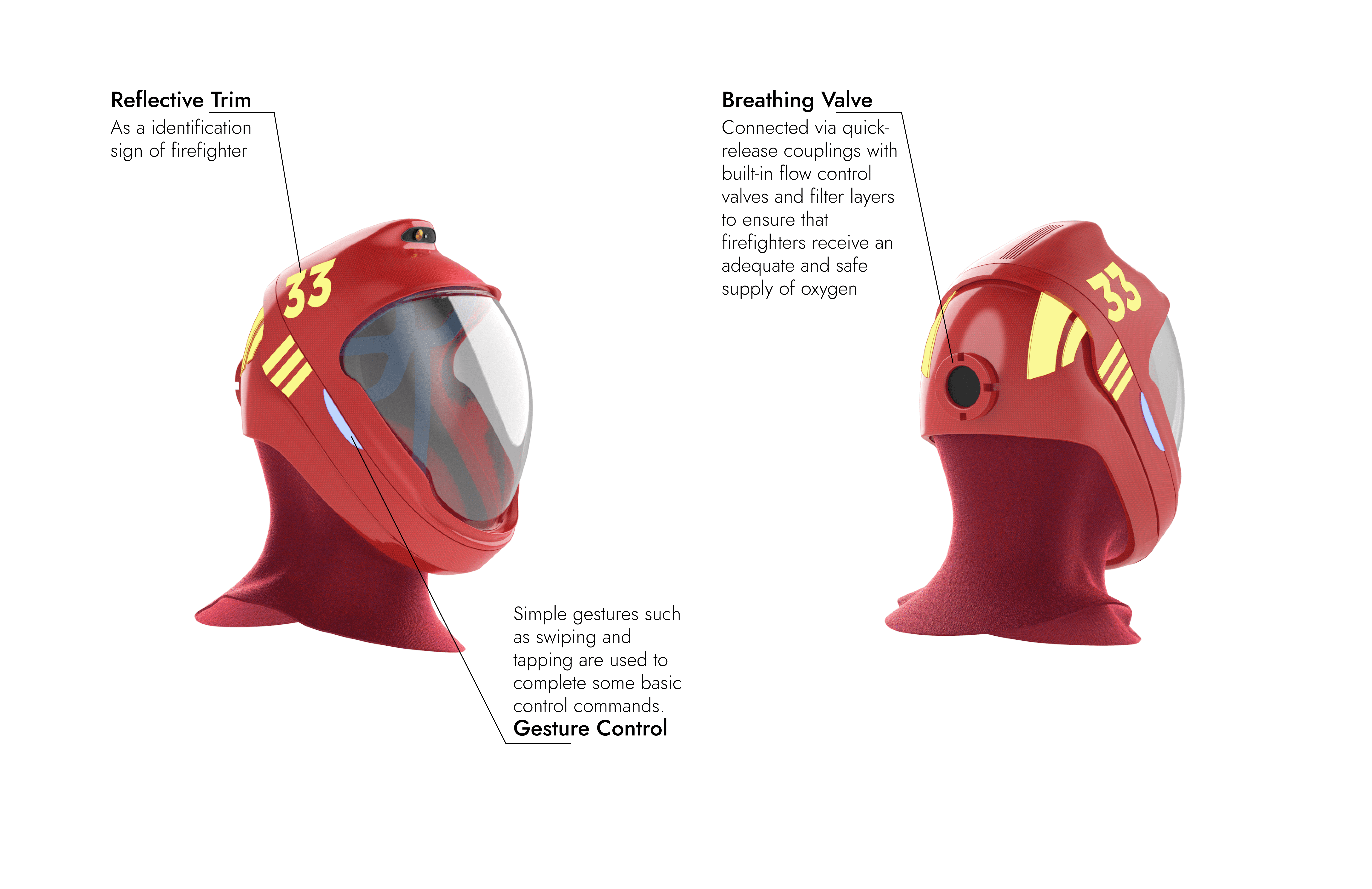 Revo is a smart AR firefighter helmet concept that integrates augmented reality, AI assisted sensing, and voice communication into a single wearable system. It overlays critical rescue information directly into the firefighter’s field of view, such as navigation guidance, hazard alerts, and environmental readings, helping them stay oriented and respond faster in extreme low visibility conditions.